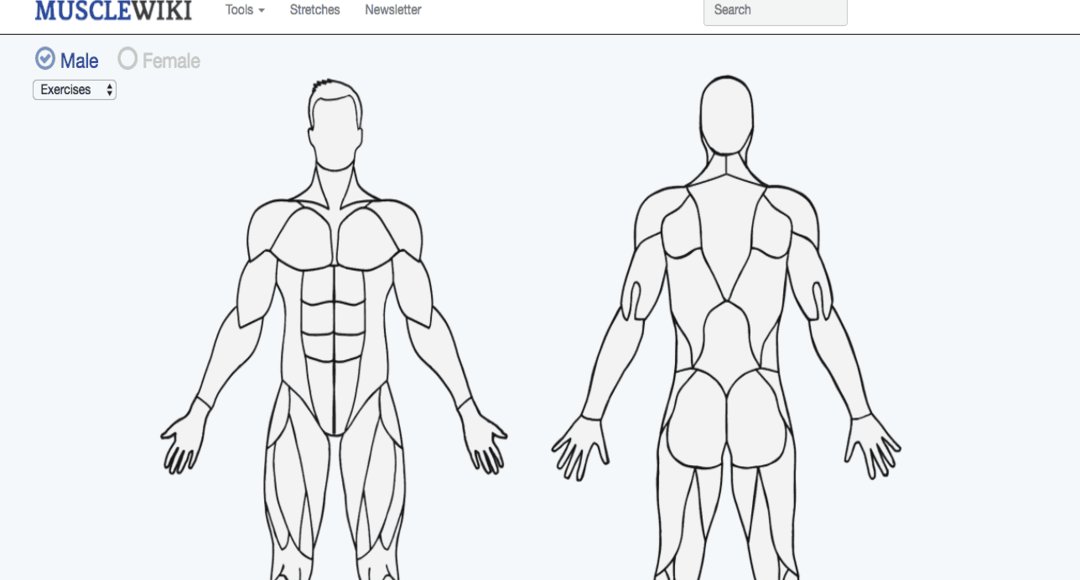 موقع يعرض لك مجسم اضغط على العضلة الذي ترِيد تمرينها ويعطيك تمارينها باللغة العربية