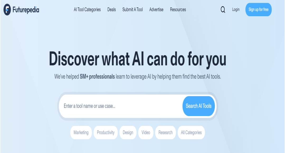 موقع Futurepedia يضم جميع مواقع الذكاء الاصطناعي ويتم تحديثه يوميًا