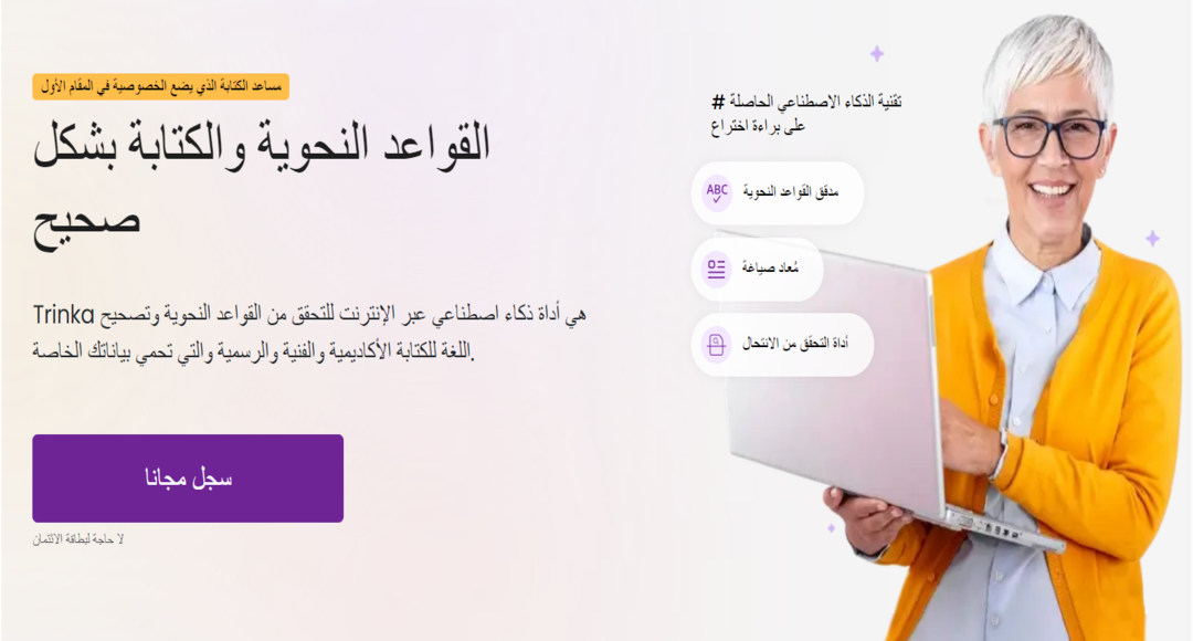 تساعدك Trinka على كتابة نصوص أكثر احترافية وخالية من الأخطاء وتقلل من الوقت الذي تستغرقه في مراجعة كتاباتك وتساعدك ايضا على الشعور بالثقة في كتاباتك.