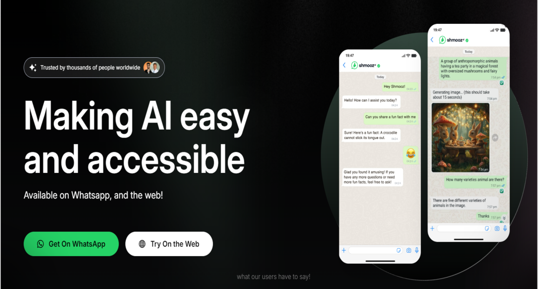 شمووز هي أداة رائعة لمن يرغب في الاستفادة من قوة الذكاء الاصطناعي في حياته اليومية. بفضل سهولة الاستخدام والتكامل مع واتساب، أصبح بإمكان أي شخص الاستفادة من ChatGPT.