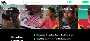 موقع Skill share هي منصة تعليمية عبر الإنترنت تقدم آلاف الدورات التدريبية في مختلف المجالات الإبداعية. من التصميم الجرافيكي والرسم إلى الكتابة والتصوير الفوتوغرافي، هناك دورة تناسب كل اهتمام. تتميز الدورات بكونها عملية وموجهة للمبتدئين والمحترفين على حد سواء، وتقدم لك الفرصة للتعلم من أفضل الخبراء في المجال.