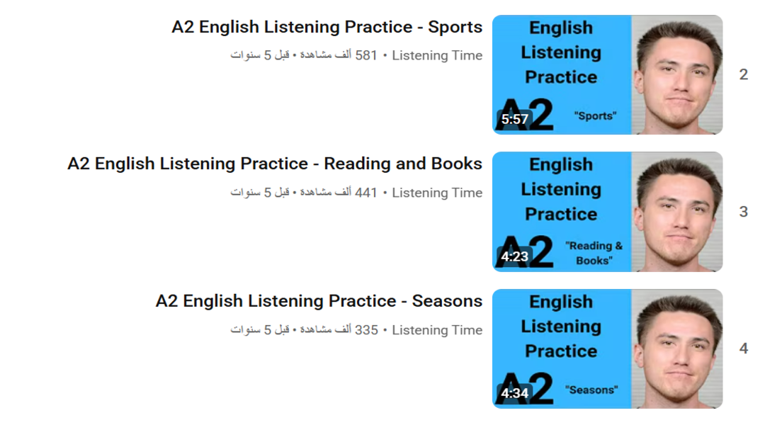 - بودكاست مخصص لمستوى A2 من قناة Listening Time.