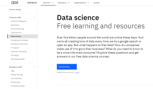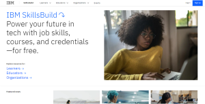 1 – قم بزيارة الموقع الرسمي لـ IBM SkillsBuild وحدد موقع الصفحة الرئيسية أو قسم ”الدورات التدريبية“.