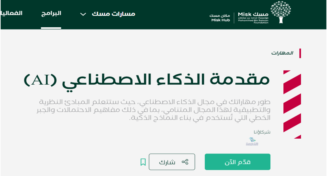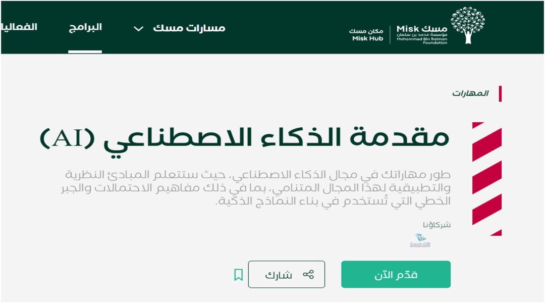 التسجيل في دورة مقدمة الذكاء الاصطناعي من مسك ( مجانية + الشهادة )
