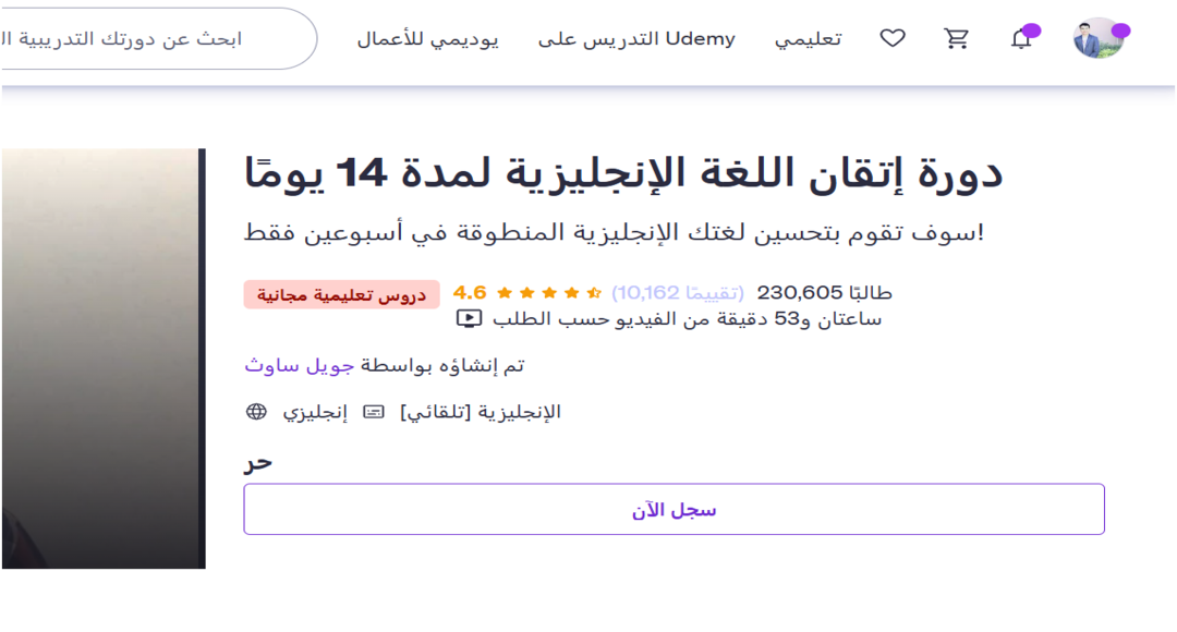 للتسجيل في الدورة يمكنك التوجه إلى صفحة الدورة الرسمية على موقع Udemy وبدء الدراسة مباشرة.