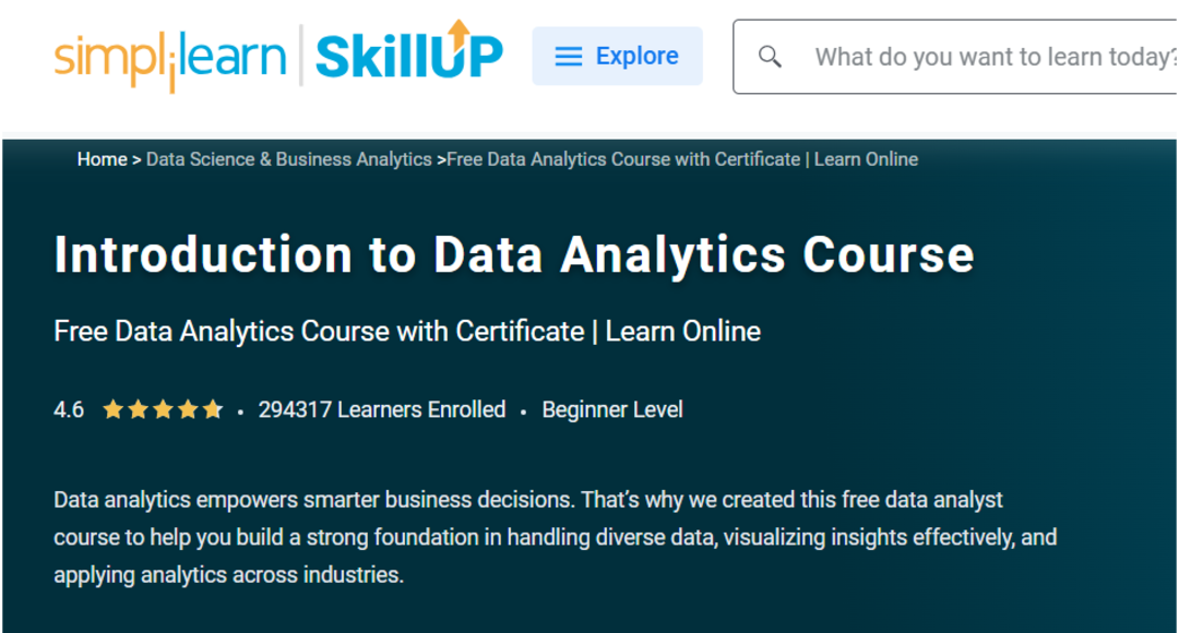 دورة تحليل البيانات المعتمدة من Simple learn (مجانية)