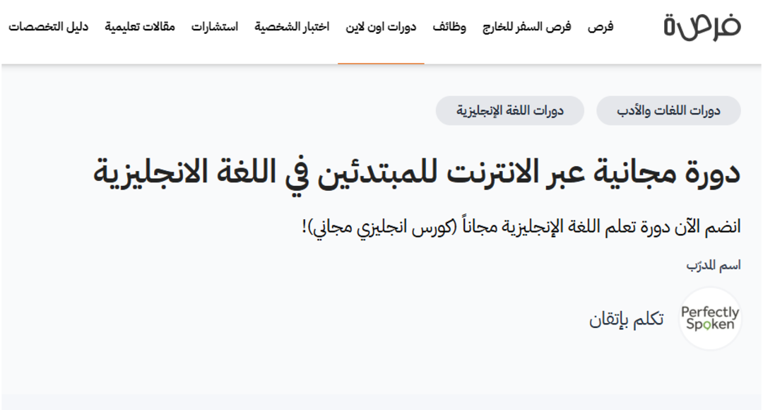 دورة مجانية عبر الإنترنت للمبتدئين في اللغة الإنجليزية من منصة فرصة
