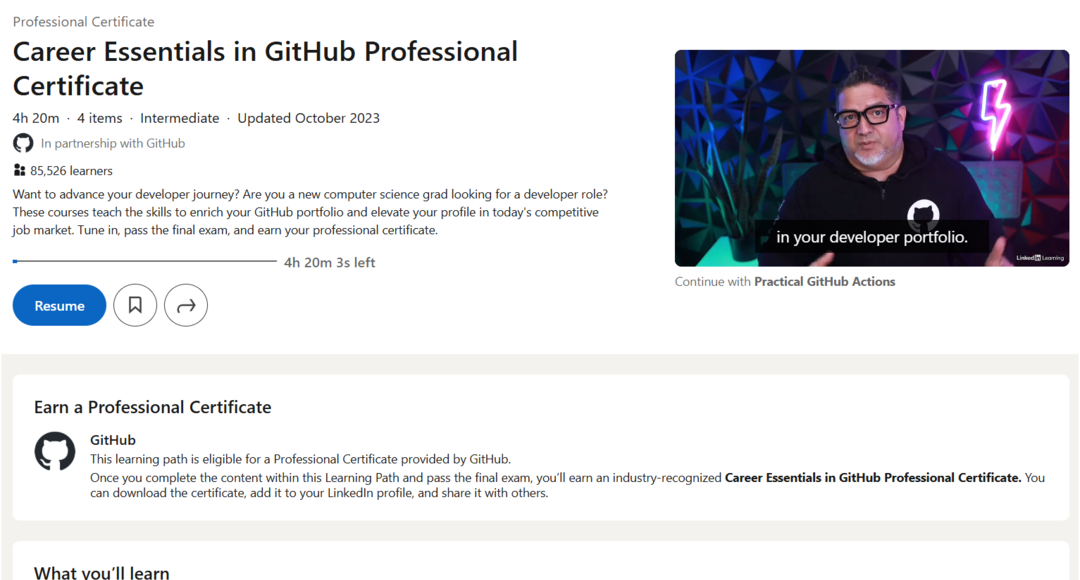 يعتبر مسار GitHub Career Essentials خطوة مثالية للمبتدئين الراغبين في بناء أساس تقني قوي وفهم GitHub من منظور عملي. يجمع المسار بين الشرح الواضح والتطبيق الفعلي للمهارات، مما يمنح المتعلم قدرة أكبر على دخول سوق العمل بثقة. يمنحك هذا المسار أدوات أساسية تساعدك على تطوير مشاريعك، التعاون مع الفرق، وتحسين جودة عملك البرمجي ليكون أكثر احترافية واستقرارًا.