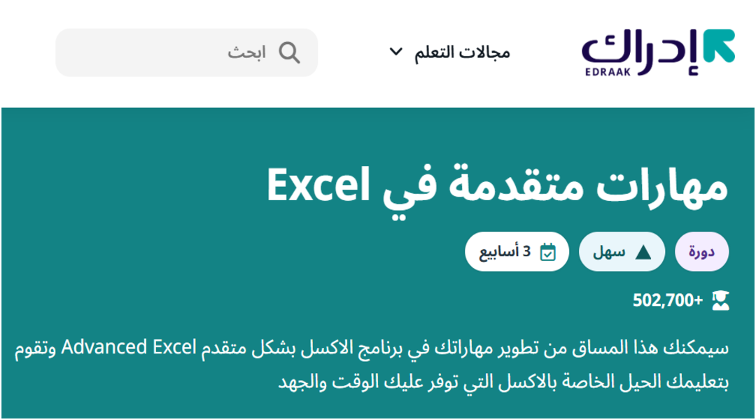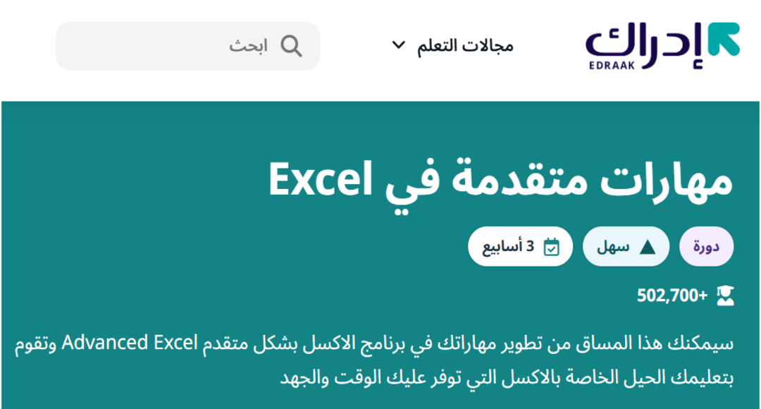 دورة مهارات متقدمة في Excel عبر إدراك – مراجعة شاملة