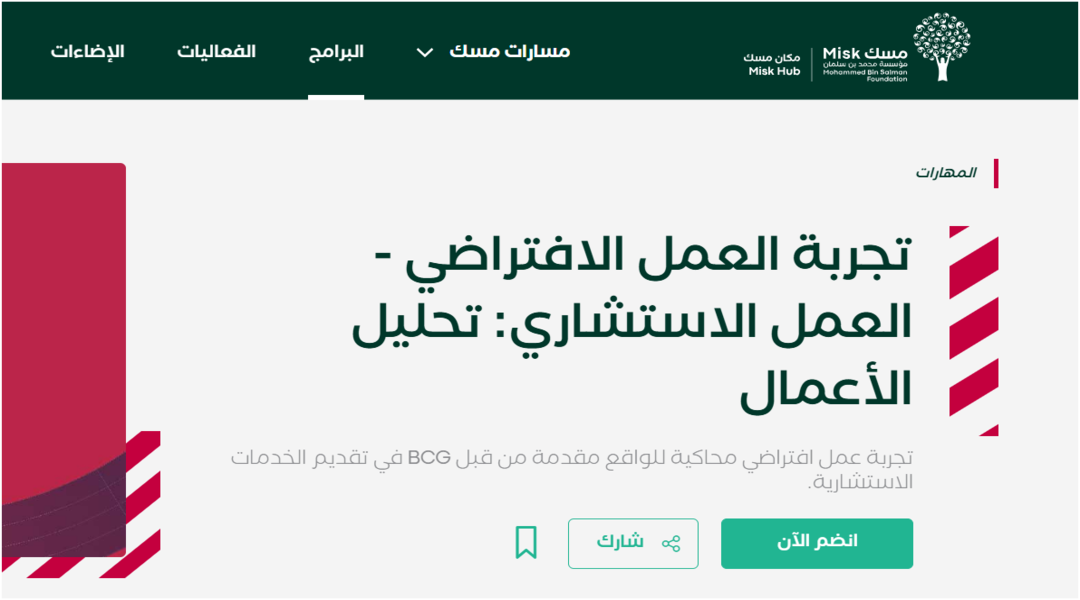 برنامج تجربة العمل الافتراضي BCG هو أحد البرامج التدريبية التي تقدمها مؤسسة مسك بالشراكة