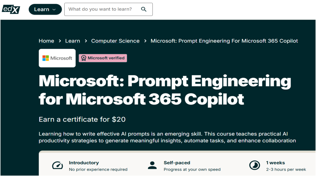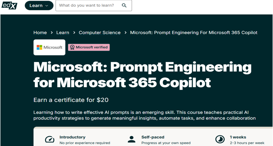 مسار تعلم Craft Effective Prompts for Microsoft 365 Copilot على edX