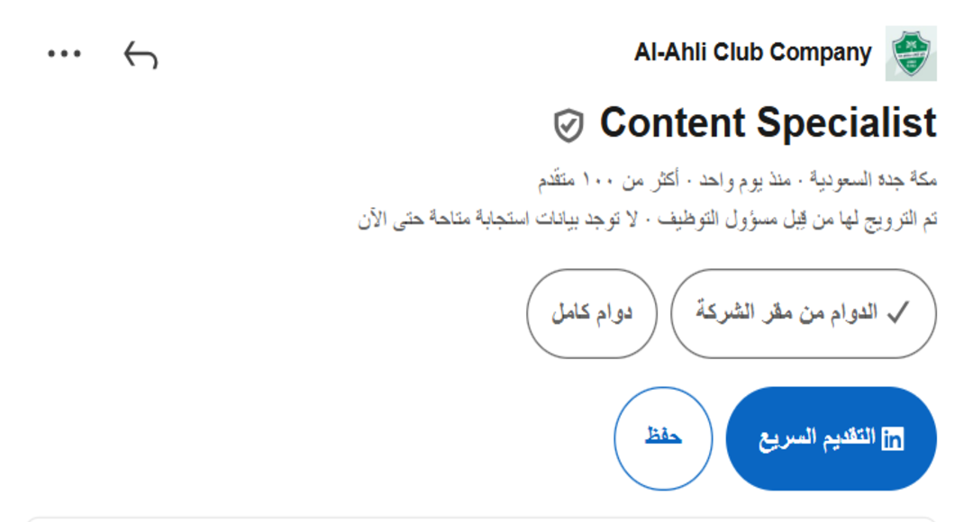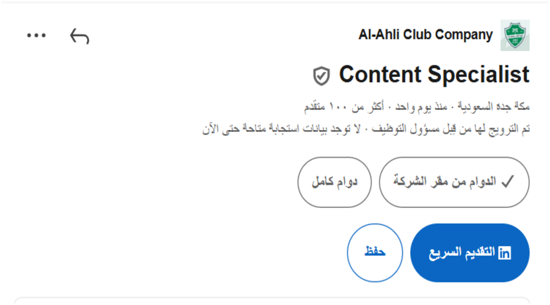 ويُعد نادي الأهلي من الأندية العريقة في المملكة العربية السعودية، ويحظى بتاريخ طويل من الإنجازات الرياضية والجماهيرية. ومع التوسع في الهيكلة الإدارية والتشغيلية للأندية، أصبحت الفرص الوظيفية في الأندية الرياضية خيارًا مهنيًا جذابًا للعديد من الخريجين والمهنيين الباحثين عن بيئة عمل احترافية ومتطورة.