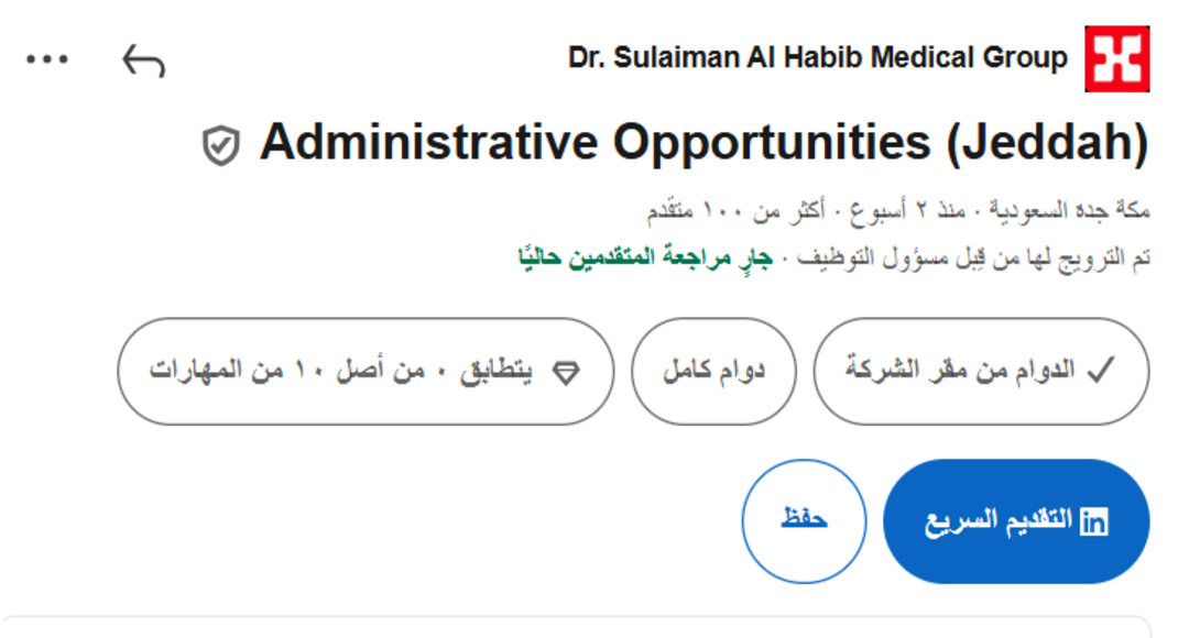 تُعد وظائف مجموعة سليمان الحبيب من أكثر الفرص الوظيفية جذبًا للباحثين عن عمل في القطاع الصحي والإداري داخل المملكة العربية السعودية، نظرًا لما تقدمه المجموعة من بيئة عمل احترافية ومسارات تطوير مهني واضحة. وقد أعلنت المجموعة مؤخرًا عن توفر عدد من الوظائف الشاغرة للجنسين في تخصصات متعددة، مما يفتح الباب أمام الخريجين وأصحاب الخبرة للانضمام إلى واحدة من أبرز المؤسسات الطبية في المنطقة.