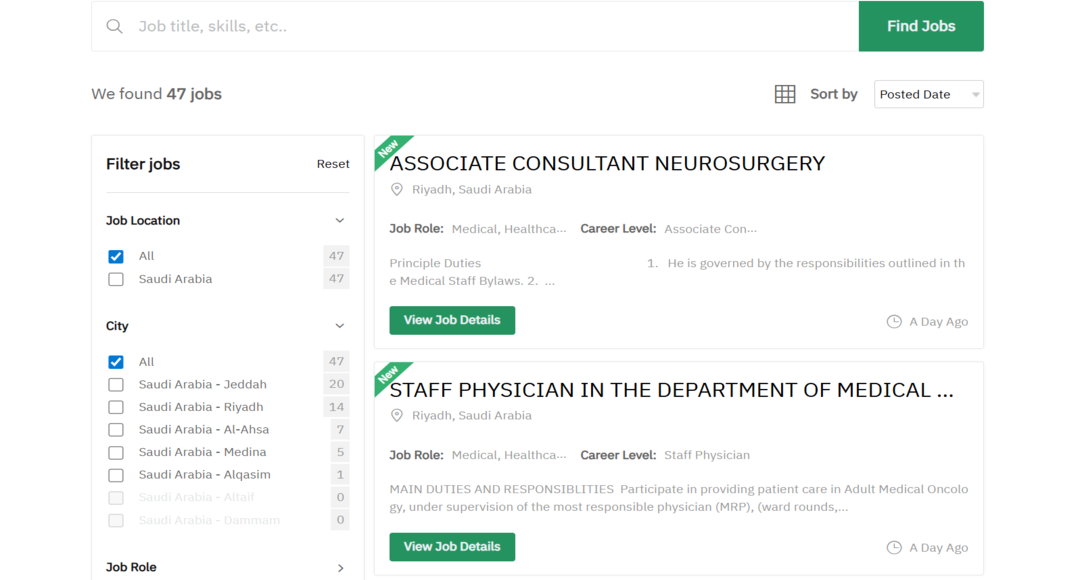 • البحث عن الوظيفة المناسبة حسب التخصص أو المدينة