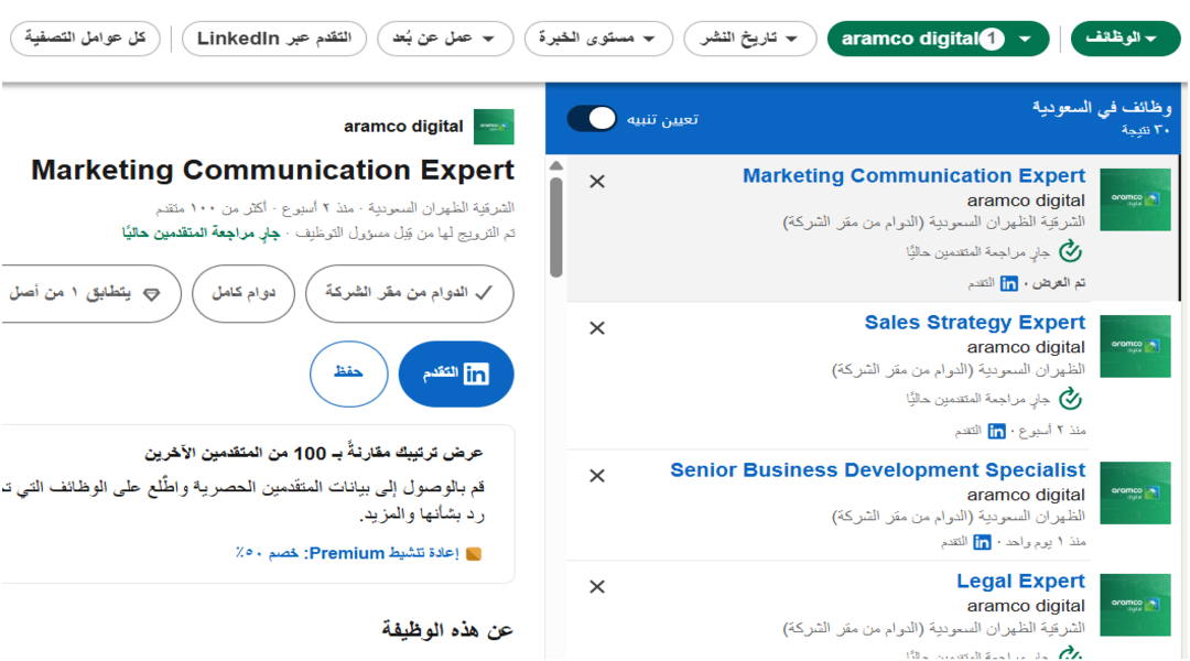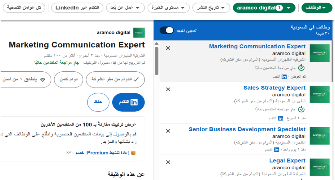 العمل داخل الشركات التابعة لـ Saudi Aramco يعتبر هدفًا مهنيًا للكثير من الباحثين عن فرص مستقرة ومتطورة، خاصة أن أرامكو الرقمية تعمل في قطاع التكنولوجيا والتحول الرقمي الذي يشهد نموًا كبيرًا داخل المملكة.