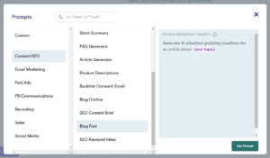 اول شيء بتضغط على شريط المحادثة بالأسفل عند Browse prompts وتختار Content ومن ثم Blog bost