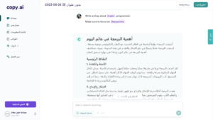 وللمقالات والأبحاث الطويلة اترك الذكاء الإصطناعي يعمل بها وادخل من قائمة شرط المحادثة بالأسفل إلى Browse prompts واختر ما تريد واكتب إسم الموضوع وسينتج لك نتيجة بعدد كلمات ضخم.