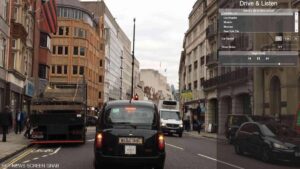 - يستخدم دريڤ اند ليستن Google Street View لإنشاء تجربة قيادة افتراضية. يمكنك تحديد مدينة من قائمة تضم أكثر من 100 مدينة حول العالم. بمجرد تحديد مدينة، يمكنك البدء في القيادة عبر الشوارع.