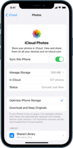 3 – ومن ثم استخدم iCloud Photos لتخزين صورك ومقاطع الفيديو. سيساعدك ذلك على الحفاظ على مساحة تخزين على جهازك وجعل الوصول إلى صورك ومقاطع الفيديو الخاصة بك أسهل.