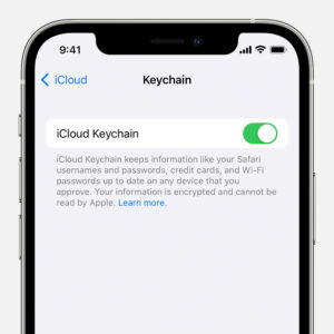 iCloud Keychain هو محفظة كلمات مرور آمنة تسمح لك بحفظ كلمات مرورك لجميع مواقع الويب وتطبيقات الويب التي تستخدمها. يمكنك الوصول إلى كلمات مرورك من أي جهاز متصل بالإنترنت.