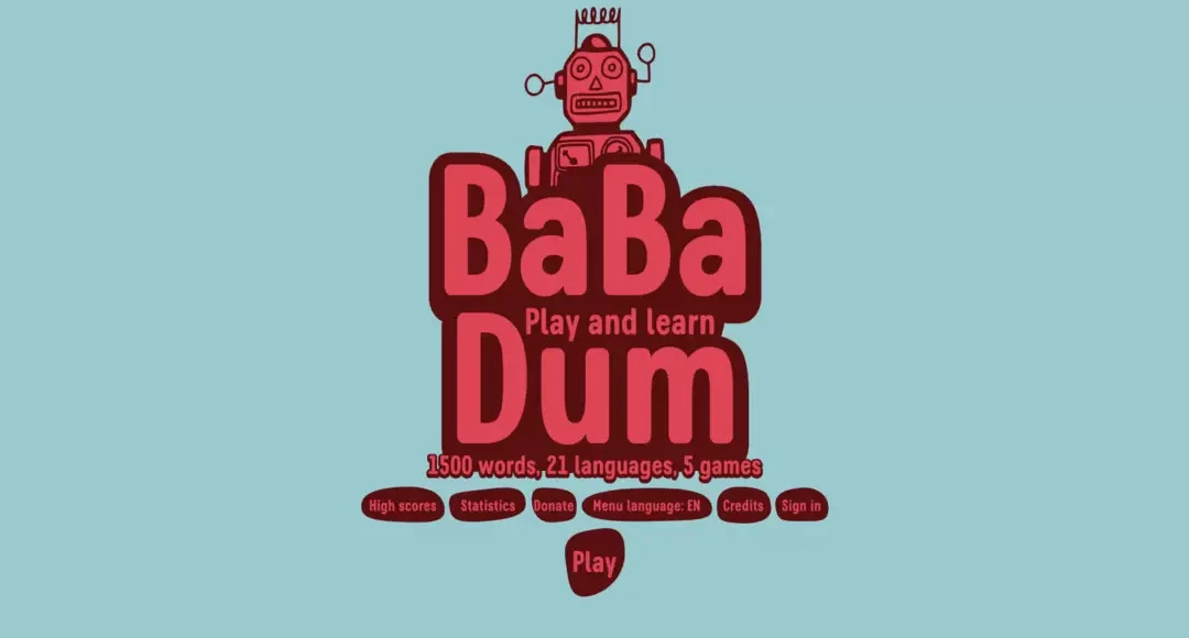 لعبة Baba Dum babadum ، هي لعبة تعليمية مجانية لتعلم ومراجعة المفردات. يتوفر الموقع بـ 21 لغة، بما في ذلك اللغة العربية.