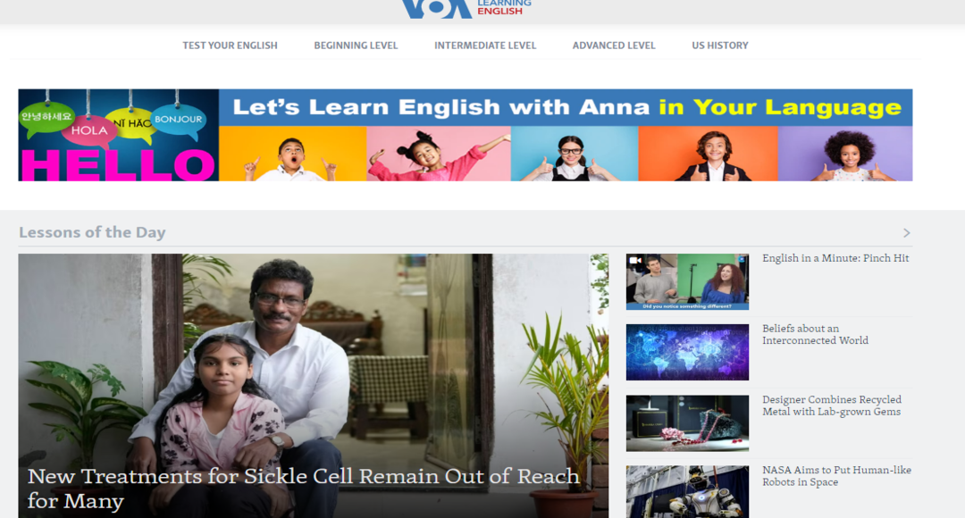 يعد موقع VOA Learning English أحد أشهر مواقع تعلم اللغة الإنجليزية في العالم. يقدم الموقع مجموعة متنوعة من الموارد التعليمية للطلاب من جميع المستويات، بما في ذلك دروس المفردات والاستماع والفهم، بالإضافة إلى مقاطع الفيديو والبودكاست والأنشطة التفاعلية.